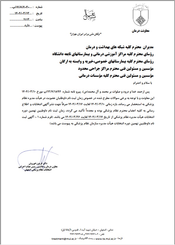 نهمین دوره انتخابات هیأت مدیره نظام پزشکی جهت اطلاعات بیشتر به آدرس ذیل مراجعه فرمایید:https://medbox.mui.ac.ir/index.php/s/Wz6dTy4RWUP2FHZ