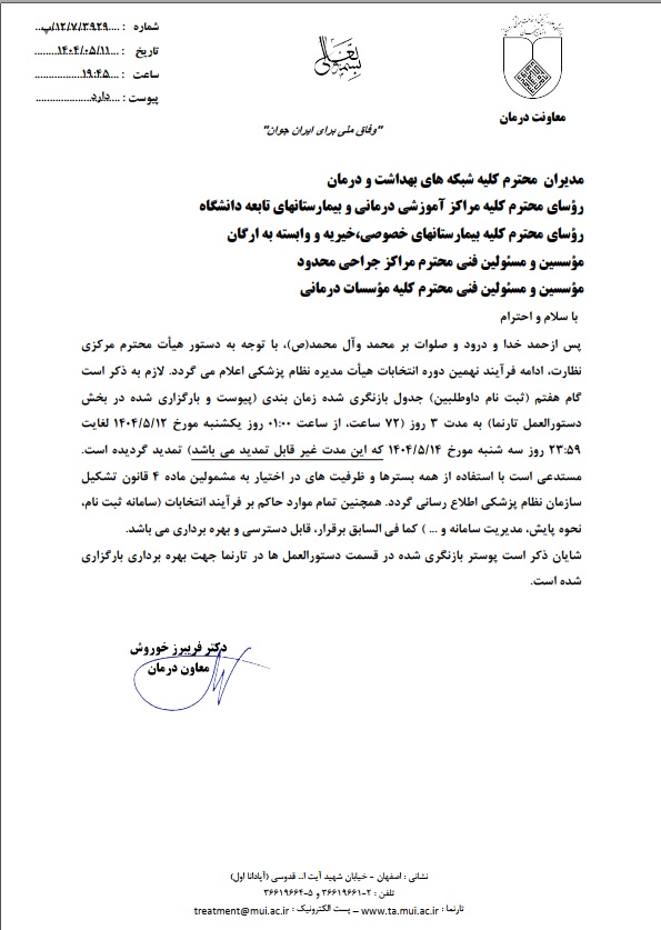 جهت مشاهده نامه و جدول بازنگری شده زمان بندی به آدرس لینک زیر مراجعه نمایید.