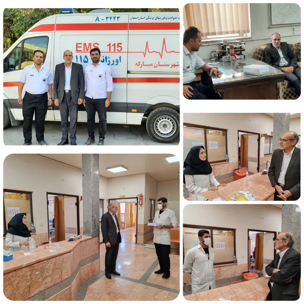 بازدید دکتر پارسا از پایگاه فوریت پزشکی شهری مبارکه و اورژانس مرکز خدمات سینا به مناسبت میلاد حضرت زینب(س) و روز پرستار